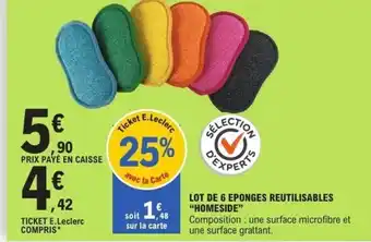 Actuellement en offre chez E.Leclerc : HOMESIDE Lot de 6 eponges reutilisables ✅ Valable du 7-04 au 18-04.