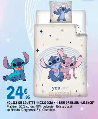 En plus de l'offre Housse de couette 140x200cm + 1 taie oreiller, E.Leclerc propose une large gamme de produits. Consultez le Catalogue E.Leclerc hebdomadaire pour découvrir les meilleures offres et promotions. En plus de Housse de couette 140x200cm + 1 taie oreiller, il y a aussi : Housse de couette 140x200cm + 1 taie oreiller 'Licence', Couette sans housse & Pack couette 300gr lavable à 95° 140x200cm & 1 oreiller 60x60cm.