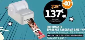 Offre Hp - imprimante sprocket panorama gris chez E.Leclerc