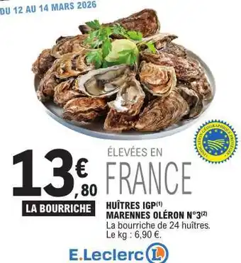 Actuellement en offre chez E.Leclerc : Huîtres IGP Marennes Oléron N°3 ✅ Valable du 10-03 au 14-03.