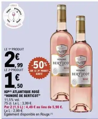 Actuellement en offre chez E.Leclerc : IGP Atlantique Rosé 'Honoré de Berticot' ✅ Valable du 3-02 au 14-02.