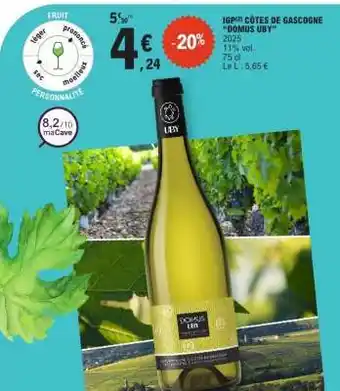 Actuellement en offre chez E.Leclerc : IGP CÔTES DE GASCOGNE DOMUS UBY ✅ Valable du 17-03 au 28-03.