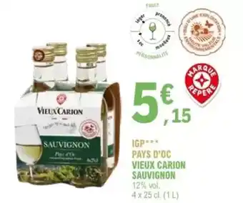 Actuellement en offre chez E.Leclerc : Igp pays d'oc vieux carion sauvignon ✅ Valable du 4-09 au 30-06.