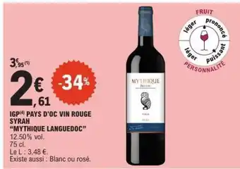 IGP Pays d'Oc Vin Rouge Syrah 'Mythique Languedoc' : offres et promos E.Leclerc à découvrir
