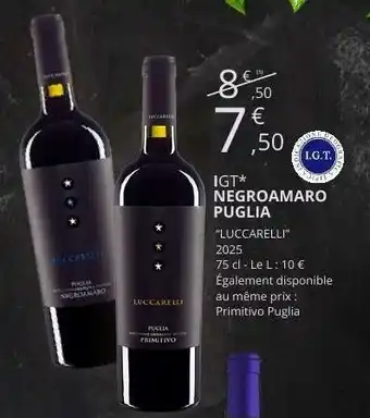 Actuellement en offre chez E.Leclerc : IGT* NEGROAMARO PUGLIA ✅ Valable du 27-04 au 2-05.