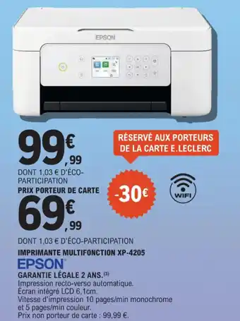 Offre Imprimante multifonction xp-4205 epson chez E.Leclerc