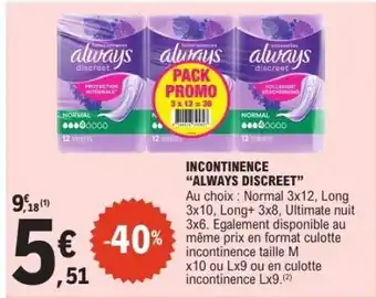 INCONTINENCE “ALWAYS DISCREET” offres et promotions en ligne chez E.Leclerc