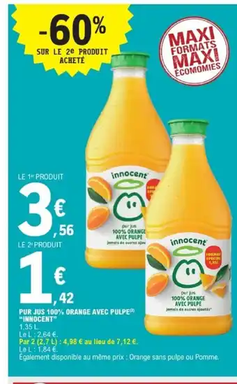 INNOCENT Pur jus 100% orange avec pulpe : offres et promos E.Leclerc à découvrir