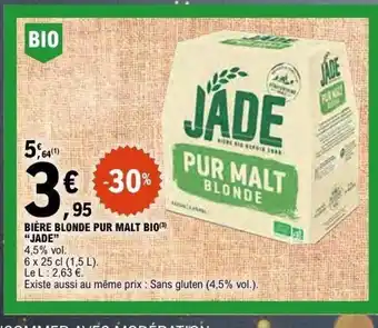 Offre JADE Bière blonde pur malt bio chez E.Leclerc