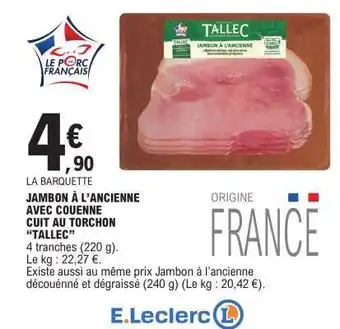 JAMBON A L'ANCIENNE AVEC COUENNE CUIT AU TORCHON TALLEC : offres et promos E.Leclerc à découvrir