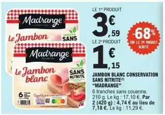 JAMBON BLANC CONSERVATION SANS NITRITE 'MADRANGE' : offres et promos E.Leclerc à découvrir