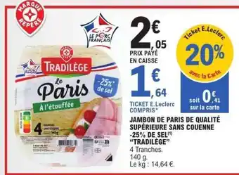 JAMBON DE PARIS DE QUALITÉ SUPÉRIEURE SANS COUENNE -25% DE SEL TRADILÈGE offres et promotions en ligne chez E.Leclerc