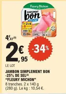 Offre Jambon Simplement Bon -25% de Sel Fleury Michon chez E.Leclerc