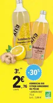 Actuellement en offre chez E.Leclerc : Jardin bio - kombucha bio citron ✅ Valable du 23-02 au 28-02.