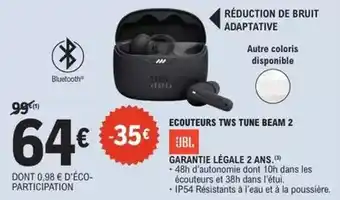 Actuellement en offre chez E.Leclerc : Jbl - ecouteurs tws tune beam 2 ✅ Valable du 27-01 au 7-02.
