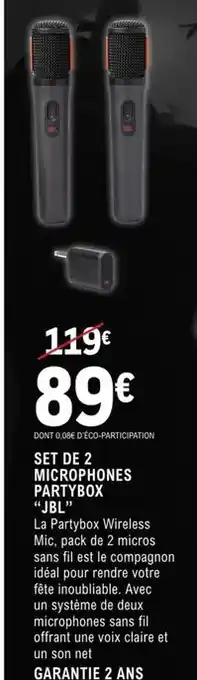 Actuellement en offre chez E.Leclerc : Jbl - set de 2 microphones partybox ✅ Valable du 10-03 au 22-03.