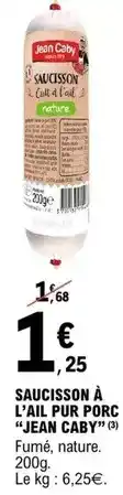 Actuellement en offre chez E.Leclerc : Jean caby - saucisson à l'ail pur porc ✅ Valable du 2-01 au 11-01.