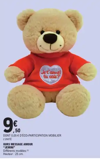 Offre JEMINI Ours message amour chez E.Leclerc