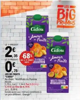 Actuellement en offre chez E.Leclerc : Jus de Fruits Cidou ✅ Valable du 30-12 au 10-01.