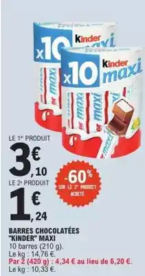 Kinder - barres chocolatées maxi : offres et promos E.Leclerc à découvrir