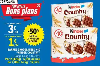 Kinder - barres chocolatées x10 minder country : offres et promos E.Leclerc à découvrir