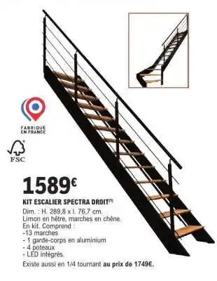 Actuellement en offre chez E.Leclerc : KIT ESCALIER SPECTRA DROIT ✅ Valable du 6-01 au 7-02.