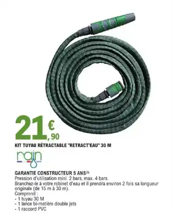 Actuellement en offre chez E.Leclerc : KIT TUYAU RÉTRACTABLE RETRACT'EAU ✅ Valable du 21-04 au 9-05.