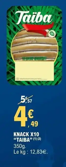L'offre est disponible dans plusieurs magasins, vérifiez tous les produits pour obtenir le KNACK X10 TAIBA le moins cher. Si vous souhaitez savoir si l'article est en vente avec une plus grosse remise dans un autre magasin, consultez la catégorie 'Supermarché'. Ces offres pourraient aussi vous intéresser : Knack d'Alsace, KNACK 100% PUR PORC & Monique ranou knack 100% pur porc.