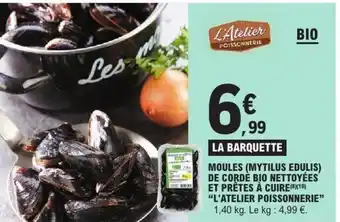 L'ATELIER POISSONNERIE Moules (mytilus edulis) de corde bio nettoyées et prêtes à cuire : offres et promos E.Leclerc à découvrir