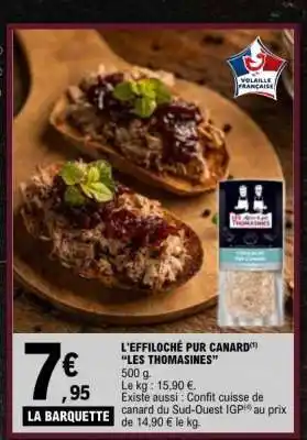 Actuellement en offre chez E.Leclerc : L'EFFILOCHÉ PUR CANARD LES THOMASINES ✅ Valable du 20-01 au 31-01.