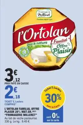 En plus de l'offre L'ORTOLAN FAMILIAL OFFRE PLAISIR, E.Leclerc propose une large gamme de produits. Consultez le Catalogue E.Leclerc hebdomadaire pour découvrir les meilleures offres et promotions. En plus de L'ORTOLAN FAMILIAL OFFRE PLAISIR, il y a aussi : L'Ortolan Familial Offre Plaisir 28% Mat.Gr, L'ortolan & Fromage Blanc Offre Plaisir Nature Fjord.