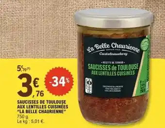 La belle chaurienne - saucisses de toulouse aux lentilles cuisinées : offres et promos E.Leclerc à découvrir