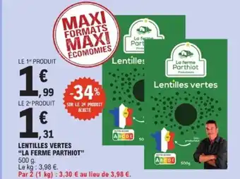 Actuellement en offre chez E.Leclerc : LA FERME PARTHIOT Lentilles vertes ✅ Valable du 3-03 au 14-03.