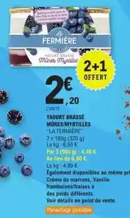 La fermiere - yaourt brassé mures/myrtilles offres et promotions en ligne chez E.Leclerc