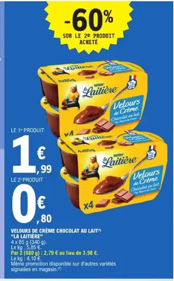 Offre LA LAITIÈRE Velours de crème chocolat au lait chez E.Leclerc