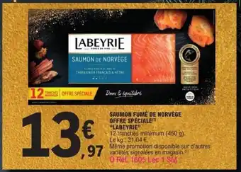 Actuellement en offre chez E.Leclerc : LABEYRI Saumon fumé de norvège offre spéciale ✅ Valable du 16-12 au 27-12.