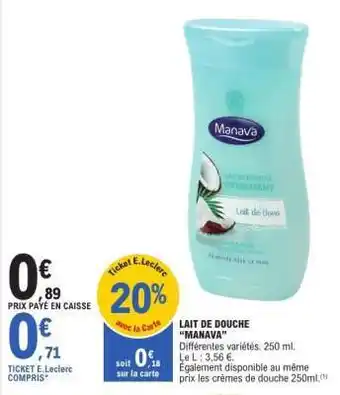 Actuellement en offre chez E.Leclerc : LAIT DE DOUCHE “MANAVA” ✅ Valable du 5-05 au 16-05.