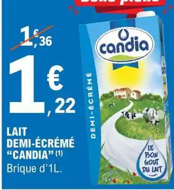 Actuellement en offre chez E.Leclerc : Lait Demi-Écrémé 'Candia' ✅ Valable du 13-01 au 25-01.