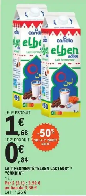 Actuellement en offre chez E.Leclerc : Lait fermenté Elben Lactoer Candia ✅ Valable du 3-02 au 21-02.
