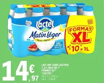 Lait uht sans lactose 1,2% mat.gr. format xl lactel 10x1 l