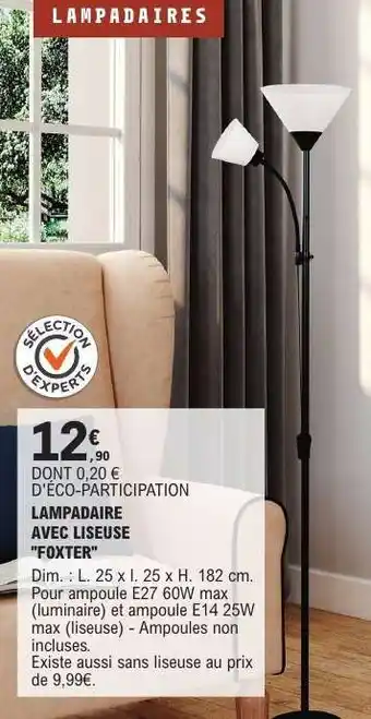 Actuellement en offre chez E.Leclerc : LAMPAIRE AVEC LAMPE DE LECTURE 'FOXTER' ✅ Valable du 20-01 au 21-02.