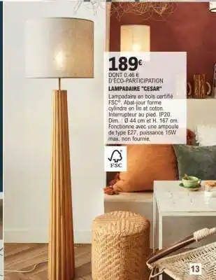 En plus de l'offre LAMPAIRE 'CESAR', E.Leclerc propose une large gamme de produits. Consultez le Catalogue E.Leclerc Brico hebdomadaire pour découvrir les meilleures offres et promotions. En plus de LAMPAIRE 'CESAR', il y a aussi : Cesar - lampadaire ecasar, LAMPAIRE AVEC LAMPE DE LECTURE 'FOXTER' & offre 3.