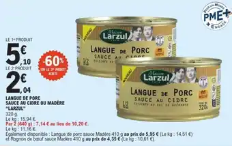 LANGUE DE PORC SAUCE AU CIDRE OU MADÈRE “LARZUL” offres et promotions en ligne chez E.Leclerc