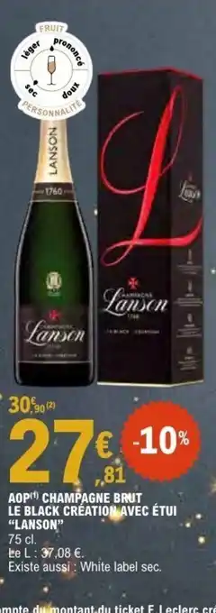 Actuellement en offre chez E.Leclerc : LANSON Aop champagne brut le black création avec étui ✅ Valable du 23-12 au 3-01.