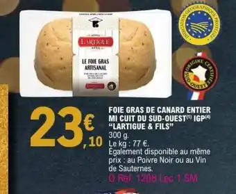 LARTIGUE & FIL Foie gras de canard entier mi cuit du sud-ouest igp offres et promotions en ligne chez E.Leclerc