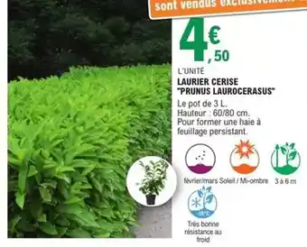 Actuellement en offre chez E.Leclerc : Laurier cerise prunus laurocerasus ✅ Valable du 3-03 au 14-03.