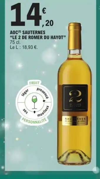 Offre LE 2 DE ROMER DU HAYOT Aoc sauternes chez E.Leclerc