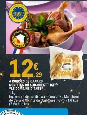 Offre LE DOMAINE D'ANET 4 cuisses de canard confites du sud-ouest igp chez E.Leclerc
