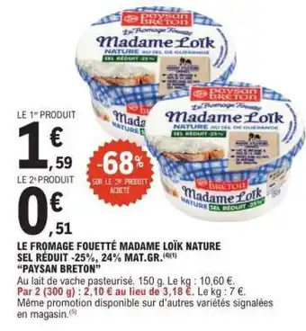 LE FROMAGE FOUETTÉ MADAME LOÏK NATURE SEL RÉDUIT -25%