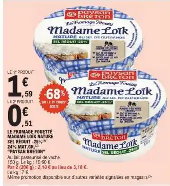 LE FROMAGE FOUETTÉ MADAME LOÏK NATURE SEL RÉDUIT -25% : offres et promos E.Leclerc à découvrir